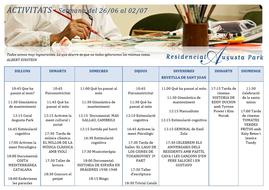 Activitats · Setmana del 26 de juny al 2 de juliol